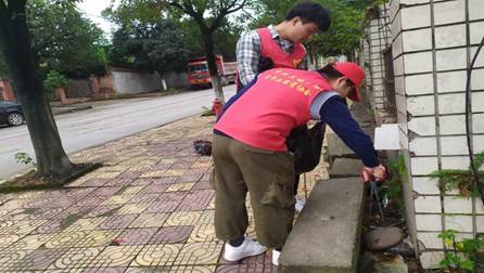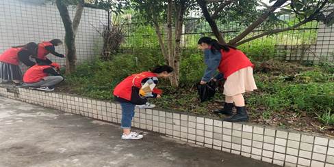 在清洁过程中,各位同学充分展现了不怕苦、不怕脏、不怕累、敢于抢挑重担的精神面貌,有的用扫把清理路面以及小区公共场所与设施,有的忙着把从绿化带中捡出的玻璃渣、烟头、塑料袋以及卫生纸等装进垃圾袋,由于工具有限,有些同学甚至用手捡拾垃圾、处理杂草,大家热情高涨,以劳动为荣,乐在其中。