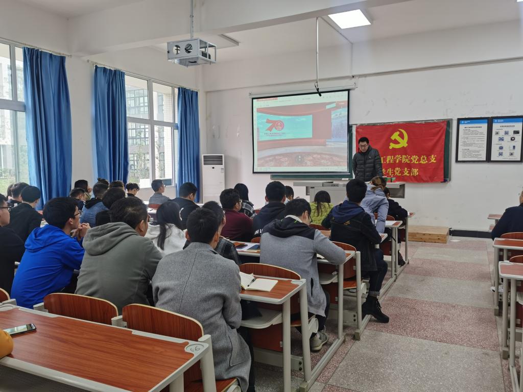 11月14日下午,44118太阳成tyc城集团党总支学生党支部组织观看了“伟大历程 辉煌成就——庆祝中华人民共和国成立七十周年大型成就展”网上展馆,在“不忘初心、牢记使命”主题教育中进一步加强爱国主义教育、弘扬爱国主义精神。党支部全体党员、入党积极分子到场观看。