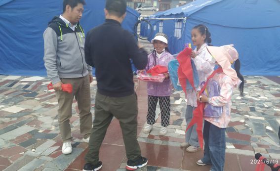 2021年5月22日2时4分青海果洛州玛多县发生7.4级地震,震区部分桥梁损毁严重。6月19-21日,我院部分教师赴灾区科考。在科考期间,教工第一党支部书记刘芳平带领部分教工党员开展了“关爱灾区儿童”志愿服务活动。