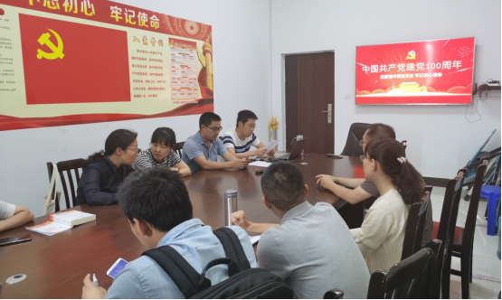 第一阶段,党支部书记刘芳平以“在疫情中领悟党史 牢记初心使命”为主题,给党支部全体党员上了一堂党课。党课主要从党史的发展脉络及重大意义、党的历史给我们的三大启示、中国共产党的三大历史贡献、战疫情始终牢记党的初心和使命四个方面进行.