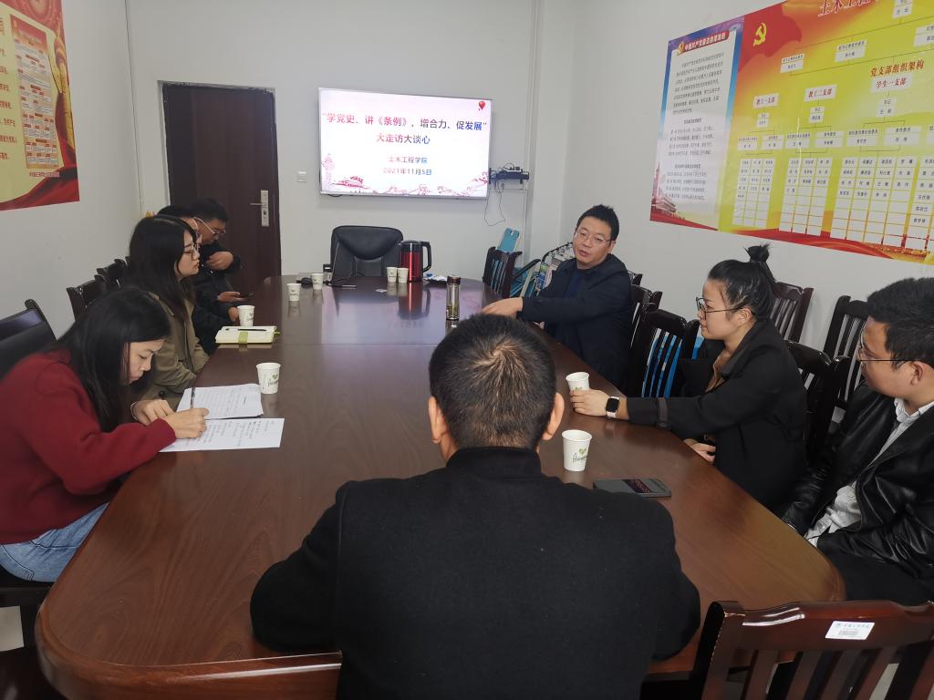 11月5日下午,我院在慎思楼5-401会议室召开了“学党史、讲《条例》、增合力、促发展”大走访大谈心活动座谈会,会议由学院党总支统战委员、院长程龙飞主持,学院各民主党派、党外知识分子、归国留学人员代表参加了会议。