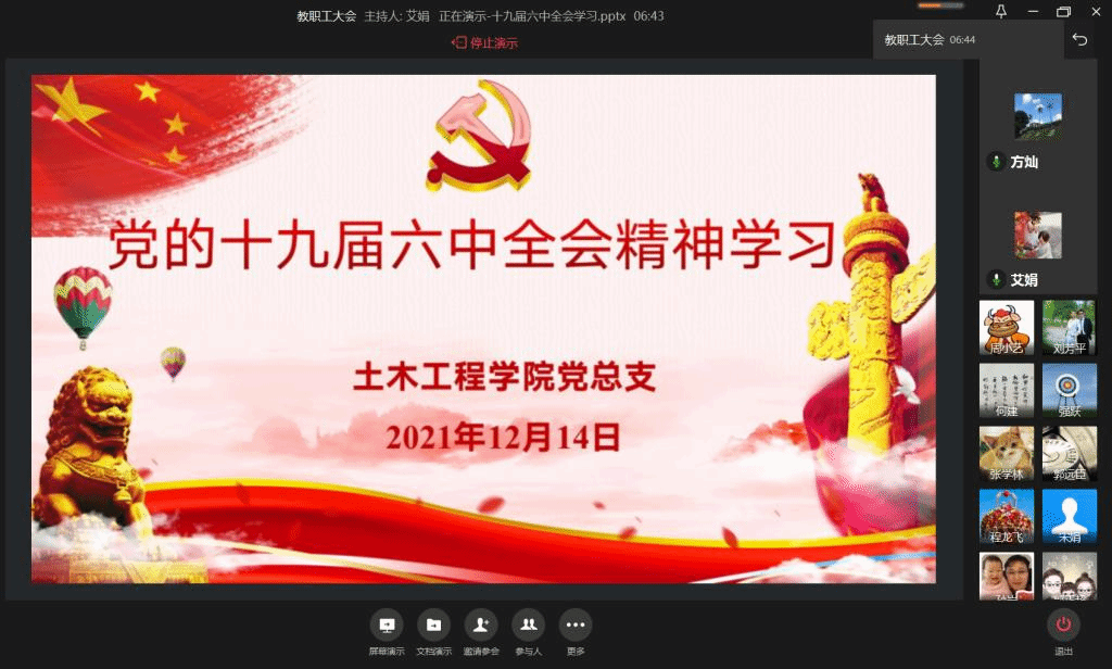 为把党的十九届六中全会精神学习宣传贯彻工作不断引向深入,确保全会精神入心入脑、落地生根、取得实效,12月14日,44118太阳成tyc城集团党总支组织全体教职工开展全会精神集中学习,党总支书记方灿作了专题宣讲。