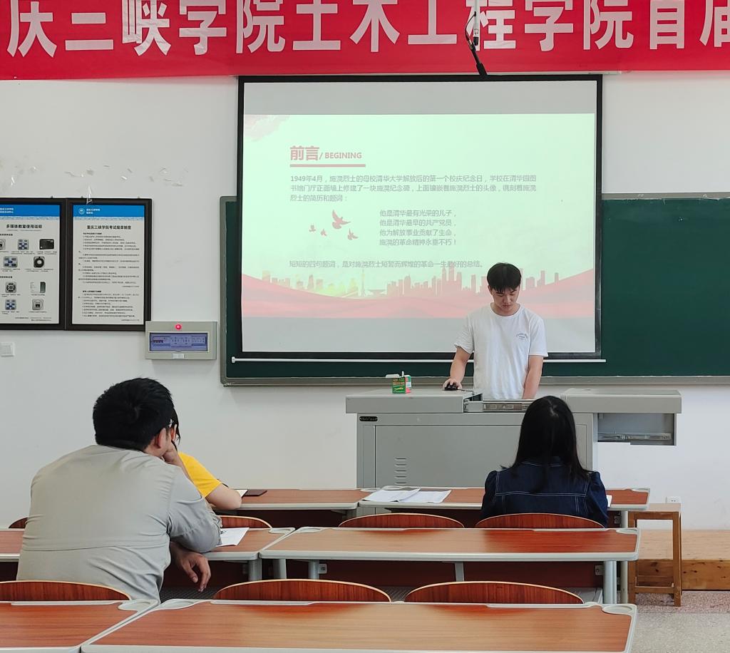 盛寒冰同志以“清华最光荣的儿子——施滉”为主题,讲述了清华最早的共产党员施滉短暂而伟大的一生。在当今,作为新时代青年更应该学习施滉追求真理并为之奋斗的精神,在政治上、生活上时刻严格要求自己,绝不随波逐流。