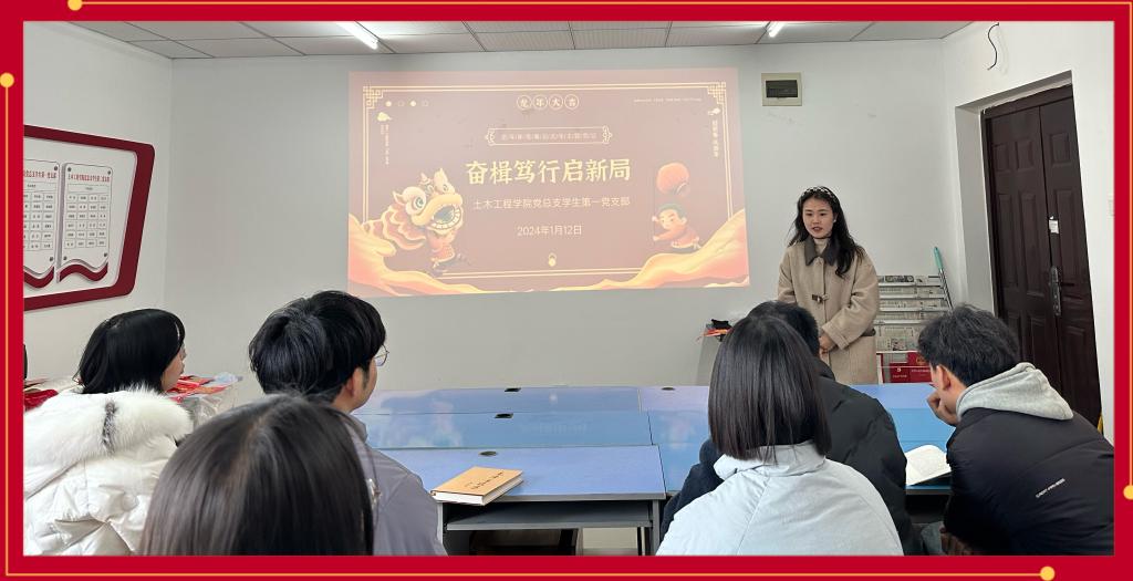 为深入学习贯彻习近平新时代中国特色社会主义思想,全面学习贯彻落实党的二十大精神,在新年来临之际,营造团结奋进、欢乐和谐和喜庆安康的春节氛围,2024年1月14日44118太阳成tyc城集团学生第一党支部在蓝雾苑党员活动室开展了“奋楫笃行启新局”主题党日活动。