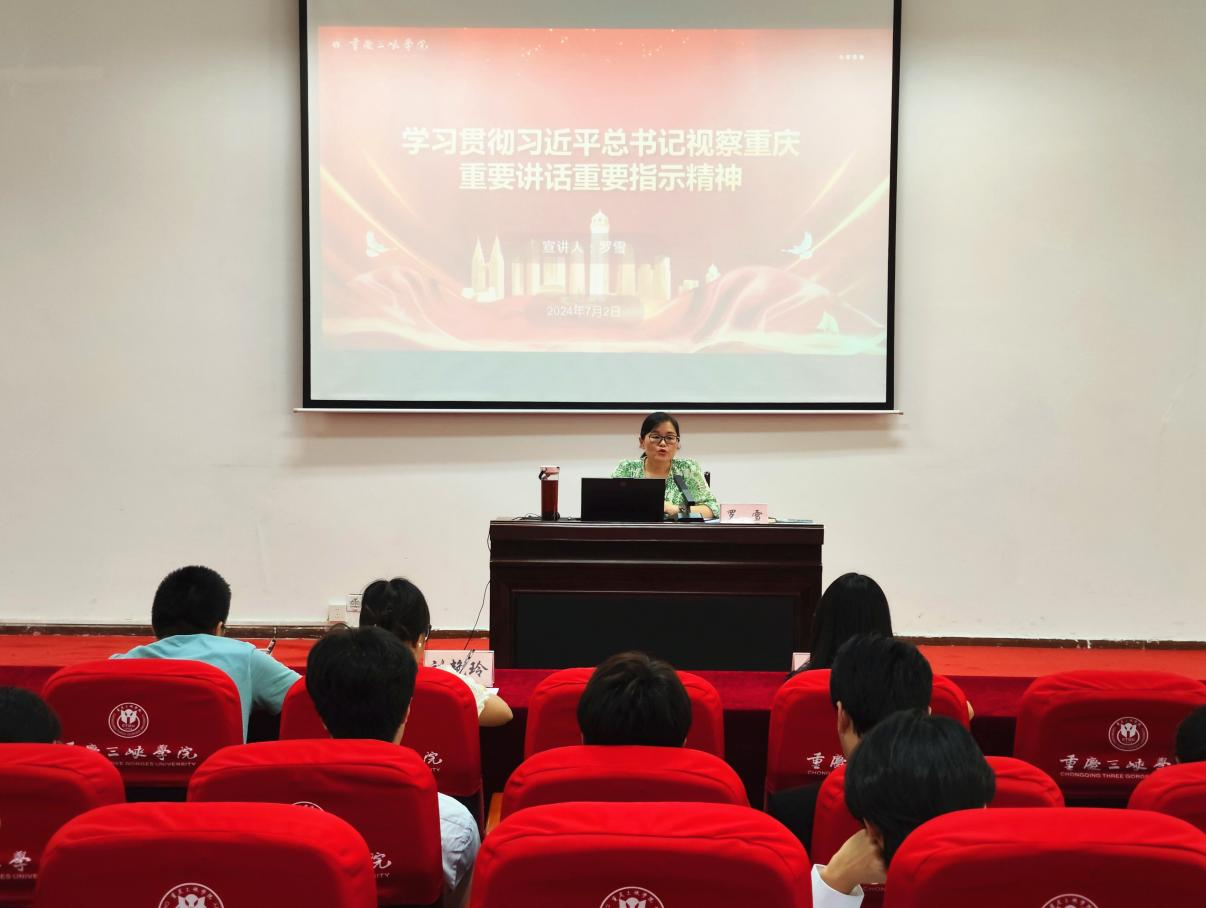 为认真学习领会贯彻习近平总书记视察重庆重要讲话的重要指示精神,坚定理想信念,强化使命感和责任感,7月2日下午,学院党总支书记罗雪在明辨楼2-106为各年级辅导员及团总支学生会全体学生干部讲授专题党课宣讲习近平总书记视察重庆重要讲话重要指示精神。