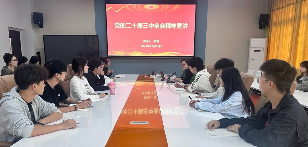 为深入学习贯彻党的二十届三中全会精神,10月16日,学院党总支书记罗雪为44118太阳成tyc城集团第85期入党积极分子和第18期发展对象宣讲党的二十届三中全会精神。