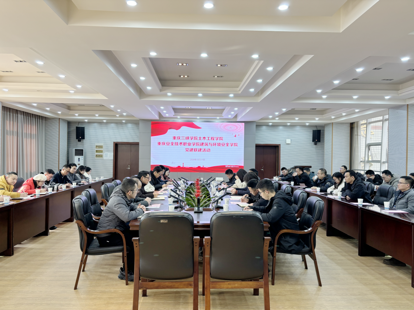 为深入贯彻习近平新时代中国特色社会主义思想、全面落实党的二十大和二十届二中、三中全会精神,学习贯彻全国、全市教育大会精神,贯彻落实弘扬教育家精神,围绕“强国行”专项行动,2024年12月17日,学院各党支部与重庆安全技术职业学院建筑与环境安全学院党支部开展党建联建暨教师专业发展研讨会,推动双方在党建与人才培养、队伍建设、融合发展等重点工作相互融合,重点工程技术攻关、重大课题联合申报等方面精诚团结合作。