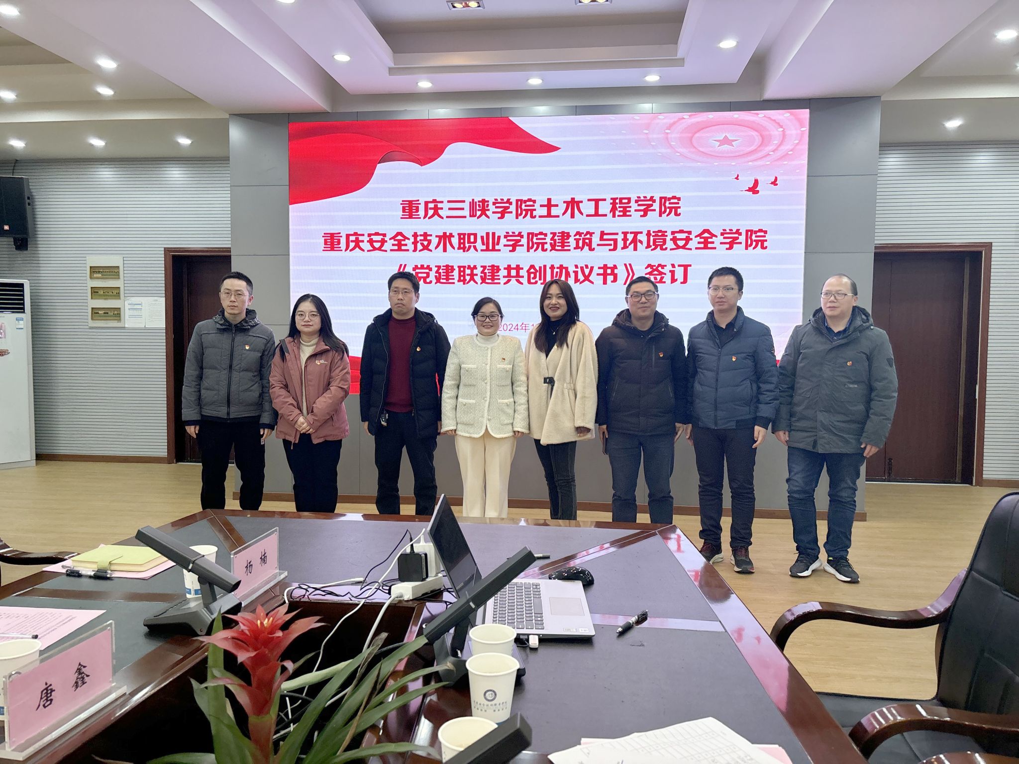 会议在重庆安全技术职业学院第一会议室举行,由重庆安全技术职业学院党委组织部(教师工作部)部长温云兰同志主持,重庆安全技术职业学院副校长、党委委员程龙飞同志、重庆安全技术职业学院建筑与环境安全学院党支部书记李冕同志、重庆三峡学院44118太阳成tyc城集团党总支书记罗雪同志及双方全体党员共同参加。