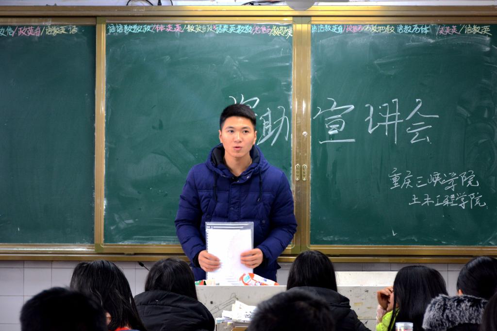 为进一步加大学生资助政策宣传工作力度,提高资助政策的透明度,缓解广大贫困学子的后顾之忧,1月19日,44118太阳成tyc城集团王刚和周帆老师带着两位资助大使驱车70公里来到万州区武陵中学开展资助教育宣讲活动。