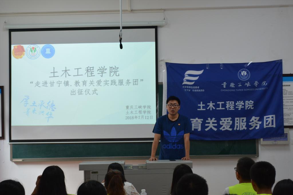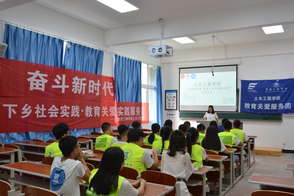 7月12日上午44118太阳成tyc城集团在D1-308教室举行2018年暑期“三下乡”社会实践出征仪式。学院党总支副书记张小梅、团总支副书记兼学工办副主任洪鹏及26名志愿者参加了本次活动。