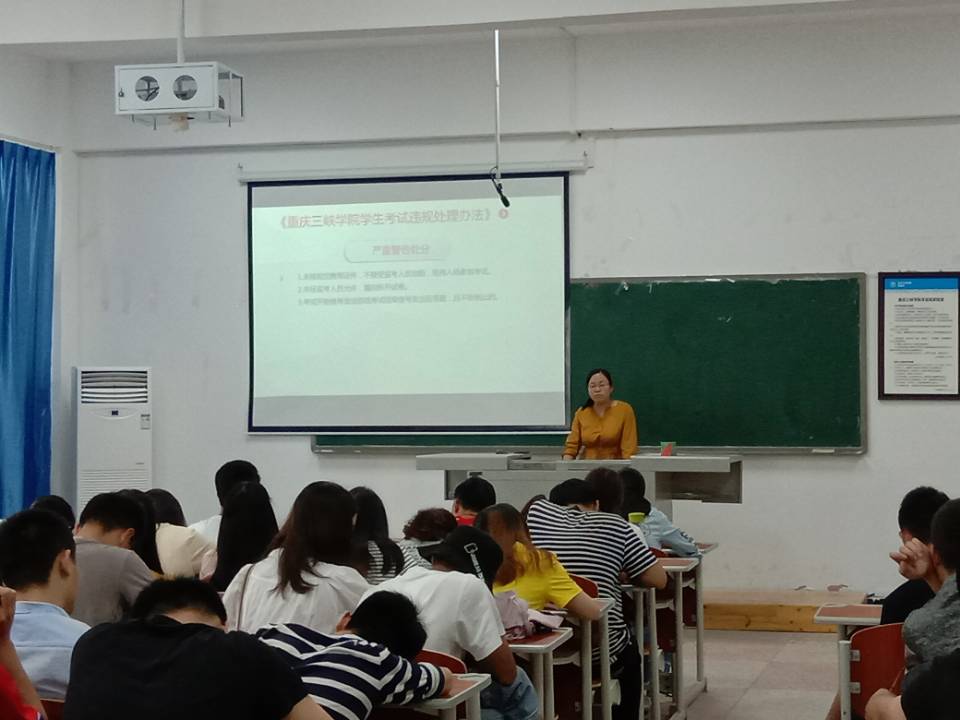 会上,各位老师向同学们详细讲述了加强考规考纪教育的重要意义,并结合《中华人民共和国刑法》、《中华人民共和国教育法》、《国家考试违规处理办法》、《普通高等学校学生管理规定》(教育部41号令)、《重庆三峡学院考试违规处理办法》等法律法规,重点强调了违法违规参加国家教育考试院统一安排的考试和学校的考试将承担的法律责任和严重后果,希望同学们加强自我约束,自觉遵守法律法规和校规校纪,践行诚信的自觉性,树立正确的考试观念。期末考试将陆续进行,希望同学们以正确的学习态度和充分的准备迎接考试,考出自己理想的成绩。