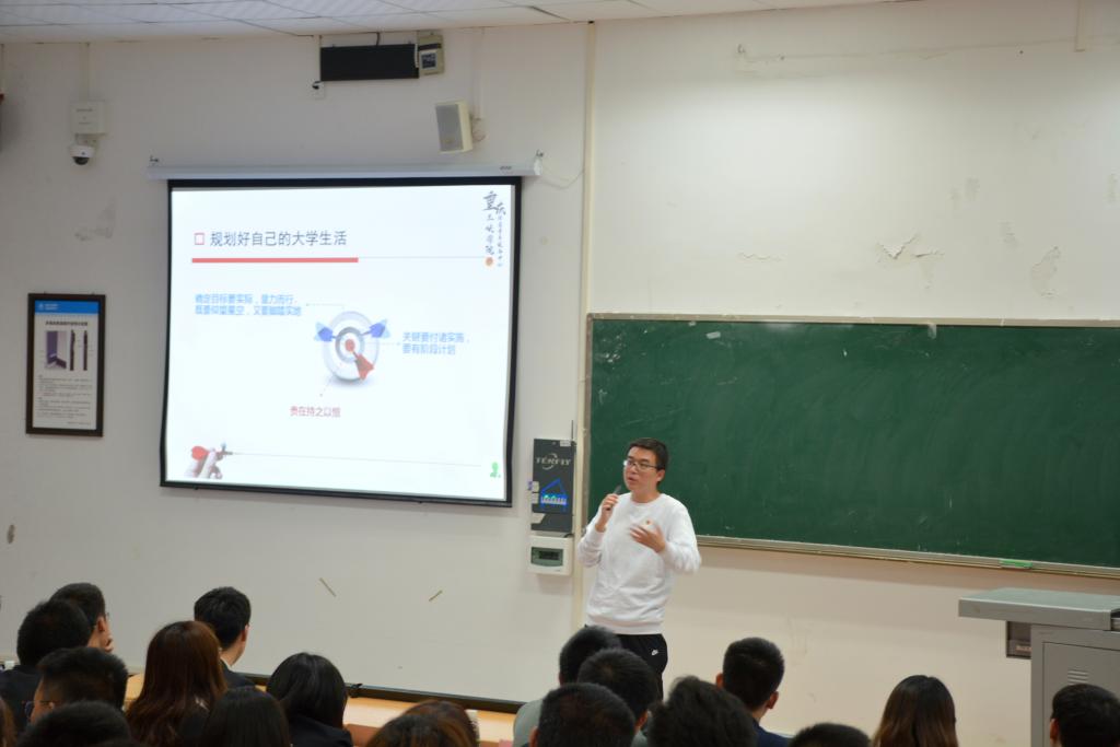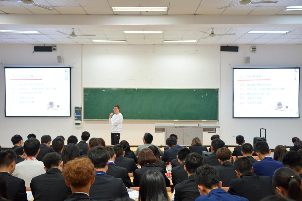 为深学笃用习近平新时代中国特色社会主义思想和党的十九大精神,全面贯彻落实党中央和重庆市委关于“不忘初心、牢记使命”主题教育工作和习近平总书记在纪念五四运动100周年大会上的重要讲话精神,不断深化大学生思想政治引领,培养社会主义建设者和接班人,10月17日晚,我院在明辨楼2栋103教室举办了2019年“芳华励志菁英,土木筑梦未来”菁英团校培训活动。出席本次活动的有44118太阳成tyc城集团党总副书记张小梅、校团委青年服务中心主任张专、学院团总支副书记洪鹏、辅导员姚国星、谢留洋以及44118太阳成tyc城集团全体团学干部干事。