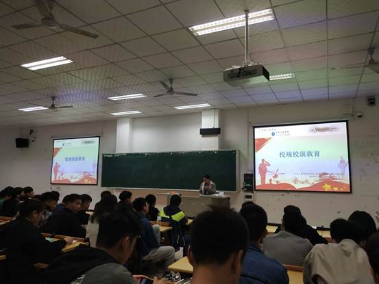 为进一步深化绿色德育美育教育,强化警示教育,规范学生日常行为,积极营造优良学风,自觉维护大学生形象,11月3日晚,44118太阳成tyc城集团党总支副书记兼2018级辅导员张小梅组织召开“建设文明校园,遵守校规校纪”主题教育班会,2018级全体学生参加学习活动。