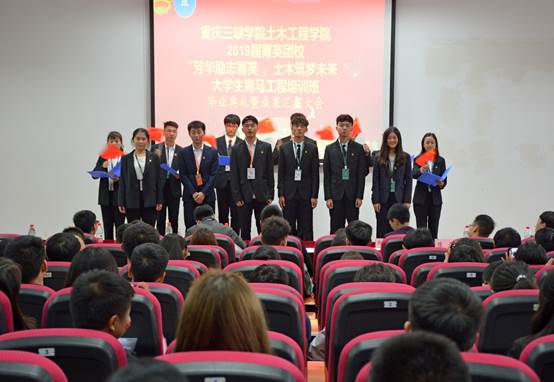 44118太阳成tyc城集团团总支学生会于11月3日下午在明辨楼二栋106举办了菁英团校“芳华励志菁英 土木筑梦未来”结业典礼暨成果汇报大会,学院团总支副书记洪鹏、2019级辅导员谭平、2018级代理辅导员谢留洋、全体团学会干部干事以及学院班级代表参会。