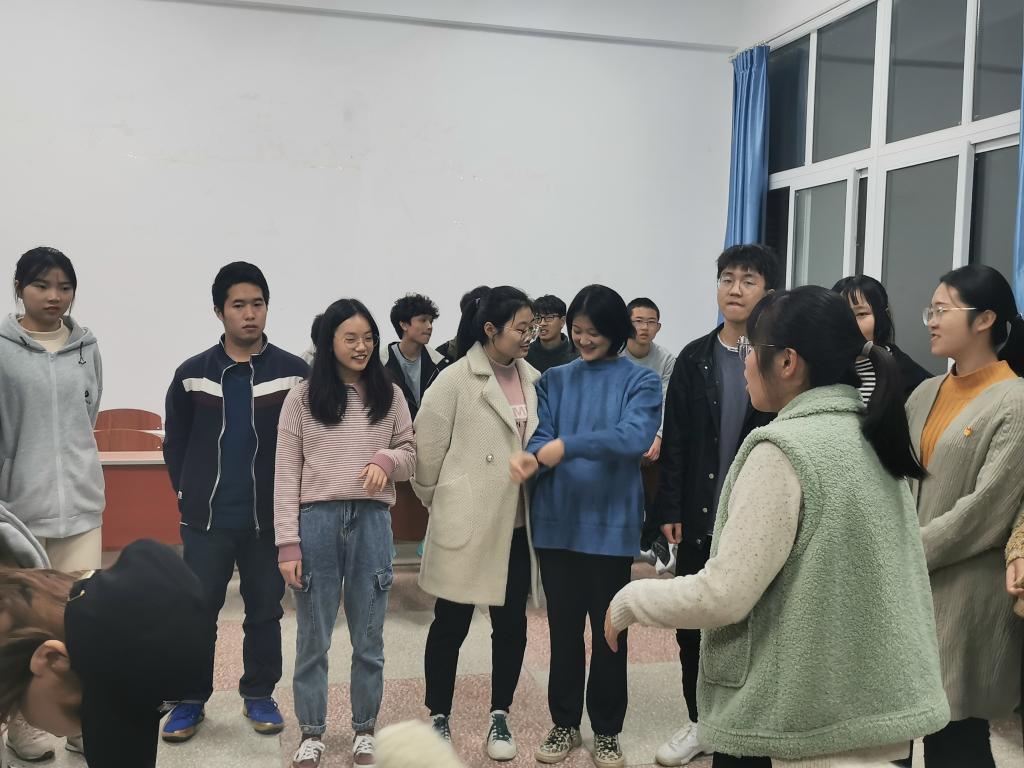 谭平老师在班会正式开始前强调指出,班会的目的是为了增强班级凝聚力,希望同学们能够认真对待,积极参与。随后,心理委员就大学生心理现状和学校心理咨询进行了讲解,并让同学们把最近这两个多月的感触和疑惑以匿名的形式写在一张小纸条上,由心理委员随机诵读,让每一位同学都成为最好的倾听者。最后是游戏环节,通过游戏拉近同学之间的距离,让同学们学会团结互助,懂得相互理解、积极协作的重要性。
