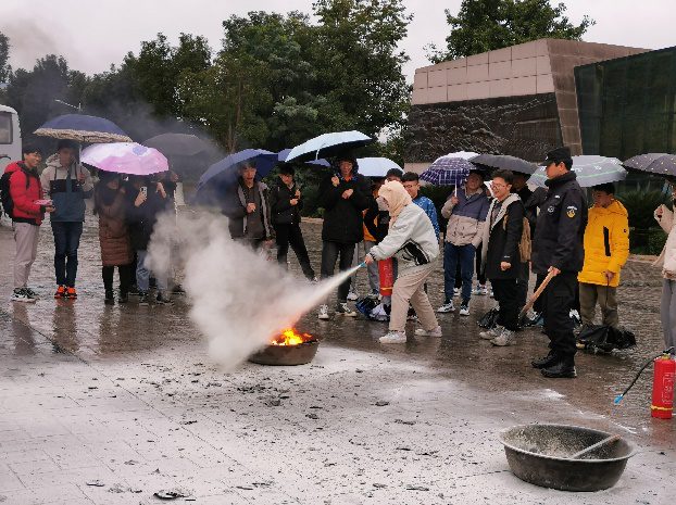 同学们在保卫处同志的带领下,亲身体验了如何使用灭火器灭火,学习了如何组装和使用消防栓,随后分批次地参观了学校的小型消防室。参加活动同学在保卫处同志对一系列消防器材安全使用的耐心讲解下,通过认真学习和实际操作,有效地掌握了正确的火灾事故处理方法。
