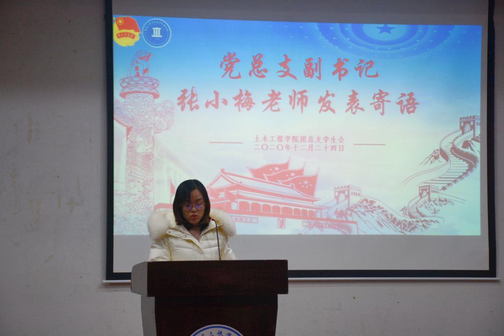 张小梅对团学会作出寄语,她表示身为团学会的一员应该具备较高的思想觉悟水平、较高的道德水平以及较高的文化积淀,要培养“顾大局,识大体”和“自尊、自爱、自信、自强、自律”这两种意识,并希望同学们在以后的学习、工作中不断努力,开拓进取,争做新时代的有为青年。