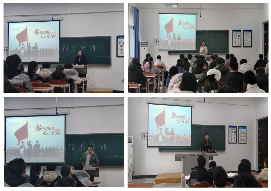 各年级辅导员向同学们传达了学校关于征兵工作的相关文件要求,重点强调了大学生应征入伍的重要意义,结合身边学生实际案例,宣传了应征入学学生在学业、升学、就业等方面的国家优惠政策,鼓励同学们携笔从戎,参军报国。