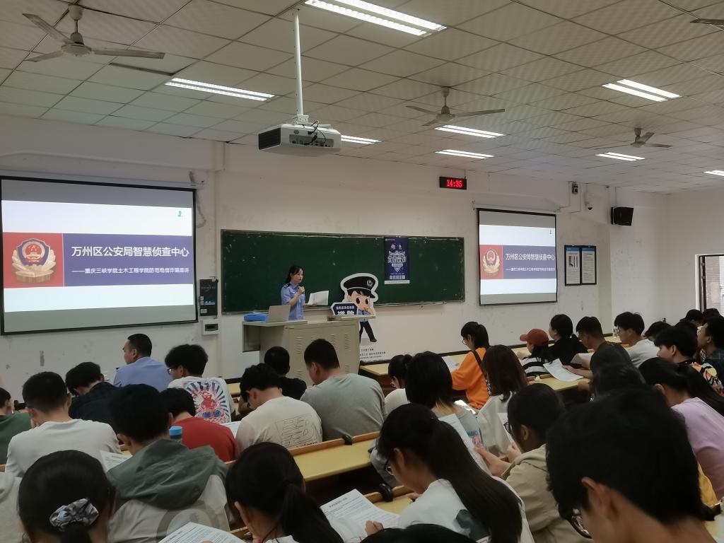 为切实提高师生防范电信诈骗意识,预防和减少电信诈骗案件的发生,6月3日下午,44118太阳成tyc城集团特邀万州区公安局智慧侦查中心在明辨楼2栋208教室开展“防范电信诈骗”宣讲活动。活动由学院党总支副书记张小梅主持,周小菲警官担任主讲。辅导员高敏和2020级学生代表现场学习防范电信诈骗的知识和技能。万州区公安局智慧侦查中心牟奇东教导员、谢洪亮支队长一行参加了宣讲活动。