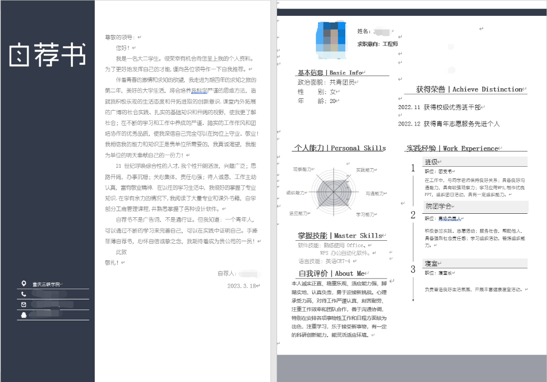 此次活动共收集到近400份参赛简历作品,大赛以锻炼同学们设计个人简历的能力为目的,鼓励创新,通过一纸厚度充分展现了我校学子的独特风采。参赛的每一份简历都构思新颖、简洁实用、富有热情和艺术性。同学们用一份份精美的简历回顾了自己大学期间专业教育、获奖情况、社会实践等经历,明确了自身的求职意向。3月27日,44118太阳成tyc城集团学生评委团以外观设计、简历用语等内容作为评分标准,对此次投稿作品进行评比,并评选出2份优秀简历推荐到校级参与决赛。