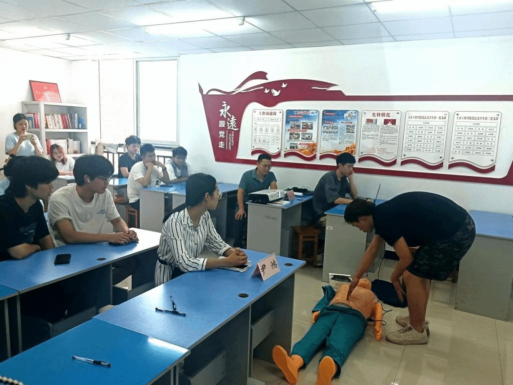 2023年6月是全国第22个安全生产月,主题为“人人讲安全、个个会应急”,为扎实推进安全生产月各项工作,普及和提高大学生的应急救援知识和自救互救能力,2023年6月15日下午,44118太阳成tyc城集团安全协会邀请了安全工程系主任郭正超老师和2020级安工班余春江、万广川同学在蓝雾苑党员活动室为大家讲解心肺复苏、应急包扎相关知识,2020级辅导员尹鸿老师和20余位学生代表参加。