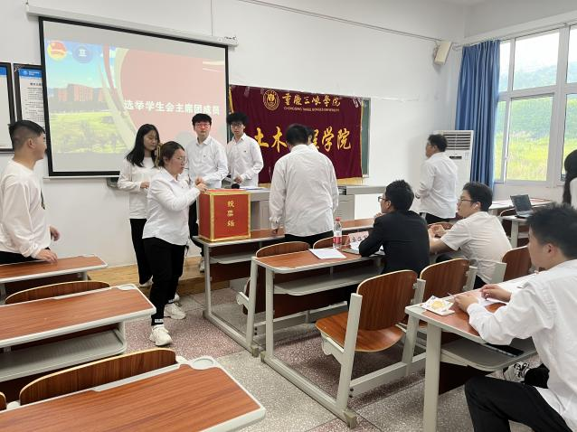 主持人蹇毅宣读《重庆三峡学院44118太阳成tyc城集团第九次学生代表大会选举办法(草案)》,并经全体代表表决通过。他接着公布了候选人张钏琳、曾赢两位候选人的基本情况。紧接着正式选举开始,学生代表们遵守秩序,投上了自己慎重的一票,最后经过大会计票统计,曾赢成功入选为44118太阳成tyc城集团第九届学生会主席团成员。