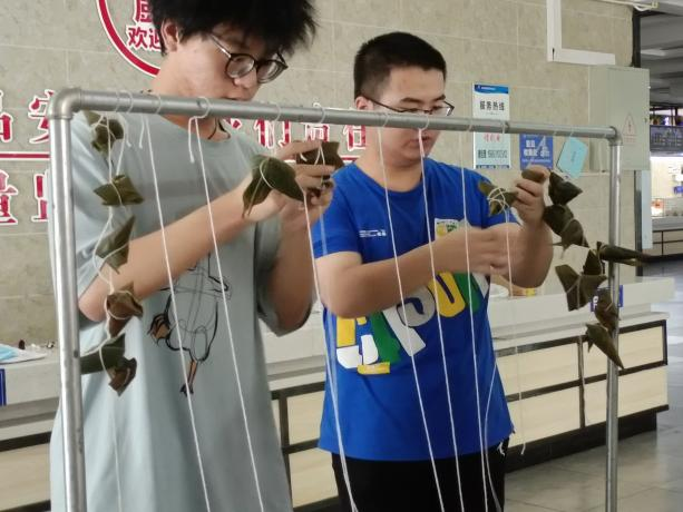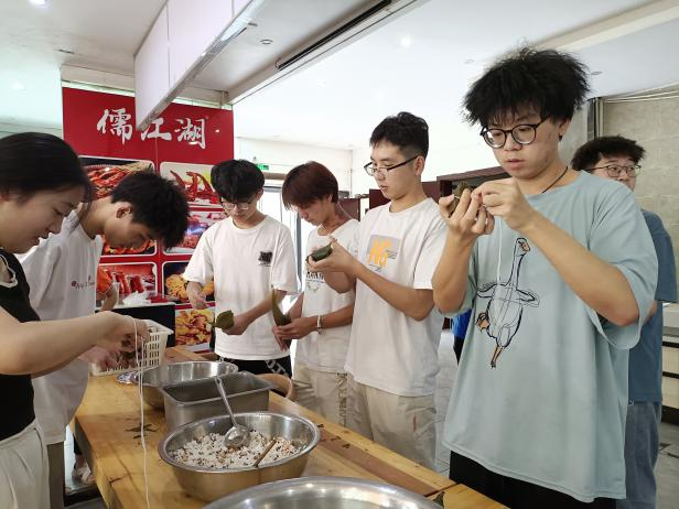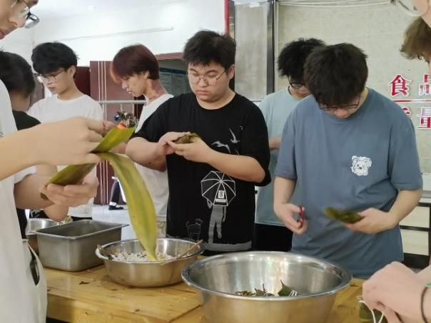 首先,陈靖同学向大家介绍了端午节的起源、传说,以及赛龙舟、吃粽子等传统习俗。然后,带领大家开展包粽子活动,在食堂工作人员的指导下,同学们纷纷尝试起来,现场气氛欢乐,大家互相帮助,交流心得,捋粽叶、做漏斗状、填糯米、压实、封口、扎捆……片刻间,一个个玲珑可爱的粽子便成型了。最后,粽子交由食堂蒸煮,同学们吃着热气腾腾的粽子,享受着本次活动带来的乐趣,感受着中国传统节日的独特魅力,伴随着欢声笑语,此次活动顺利落下帷幕。