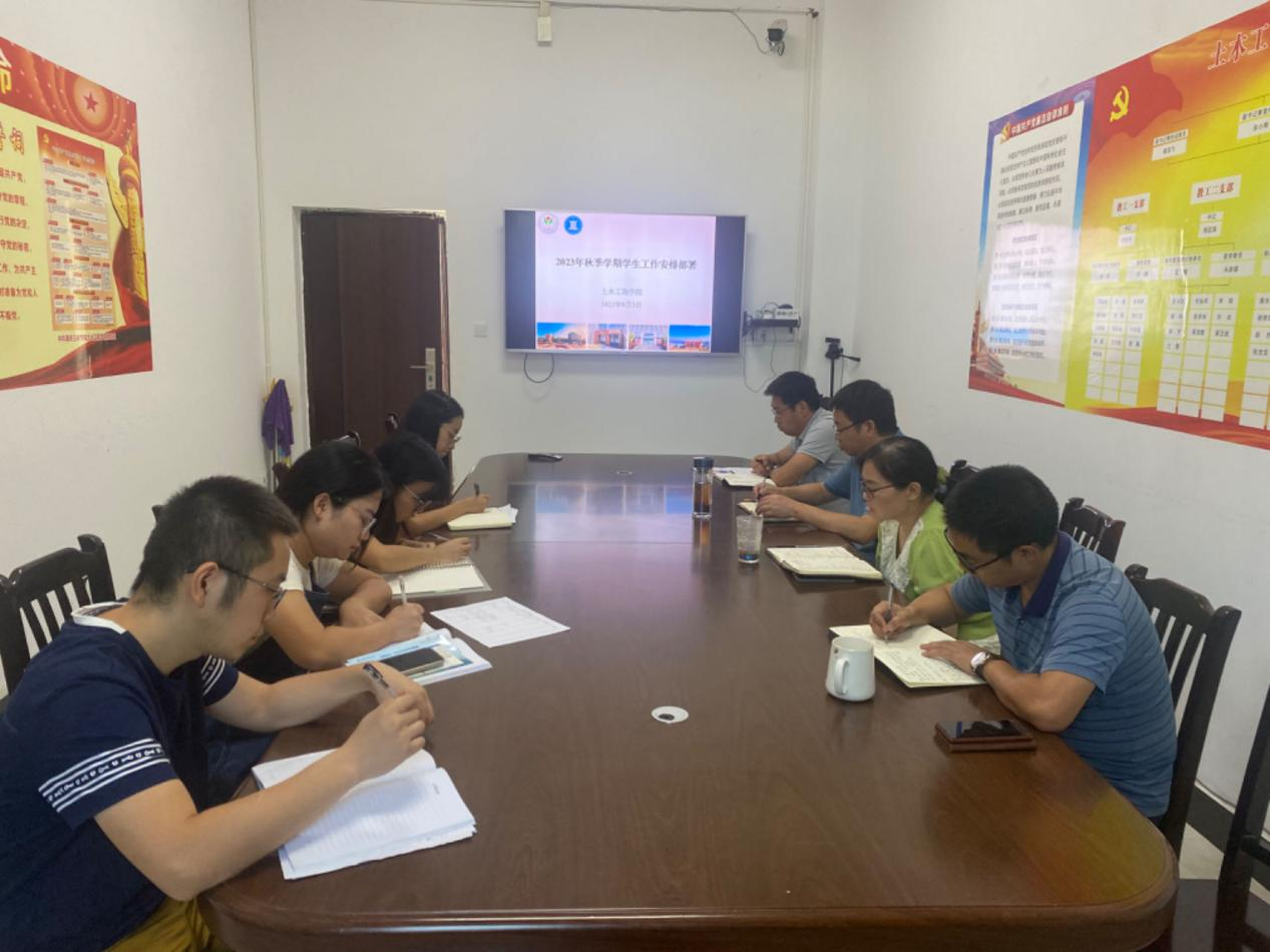 刘芳平针对学风建设、入学教育、教学与学工联动工作进行了安排。强跃就学生科研工作、研究生教学和管理工作等进行了具体布置。程龙飞围绕队伍建设、专业建设、科学研究、学生工作等方面部署了新学期工作规划,他鼓励辅导员老师们要提振精神,铆足干劲,凝心聚力,以一院一品的专业建设为核心,以更高的标准、更务实的作风,为学院内涵式高质量发展贡献力量。罗雪指出秋季学期学生工作重点,并对迎新工作、心理健康教育、安全工作、就业工作等方面进行了具体安排。她要求,学工队伍要切实提高政治站位,严守安全底线,全力以赴创造和谐稳定的校园环境;要切实增强履职本领,压实工作责任,谋划部署落实好新学期各项重点工作;要切实改进工作作风,永葆初心使命,不断提升为学生服务的质量和水平,努力做学生成长成才的人生导师和健康生活的知心朋友。