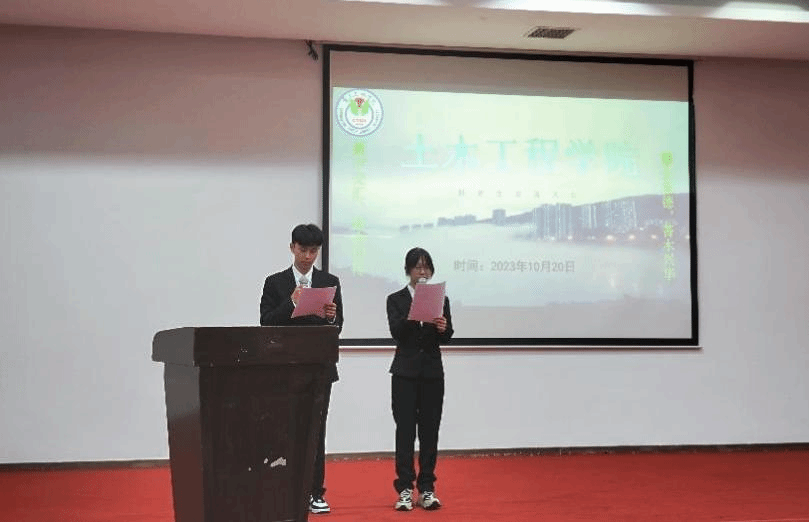 活动以嘹亮的国歌声中拉开帷幕。随后2021级土木2班学生廖冰艳、2021级道桥班学生曹喜信、2020级土木3班学生金帅喆和2022级安工班学生冯琬珈向新生传授生活经验、分享成长经历,他们分享涉及大学生活的多个方面:奖学金设置、学科竞赛、学生工作经历和人际交往自我调适等。他们以幽默风趣的语言讲述了自己的大学生活经历,鼓励学弟学妹们科学合理地安排大学生活,积极参加体育、社团活动,不断锻炼发展自我。随后,新生积极提问,学长学姐们就共性问题给予详细解答。接着,新生代表冉永强上台发言,他表示,要在未来的学习生活中以各位学长学姐为榜样,做好学业规划,提升个人能力,度过丰富充实的大学四年。