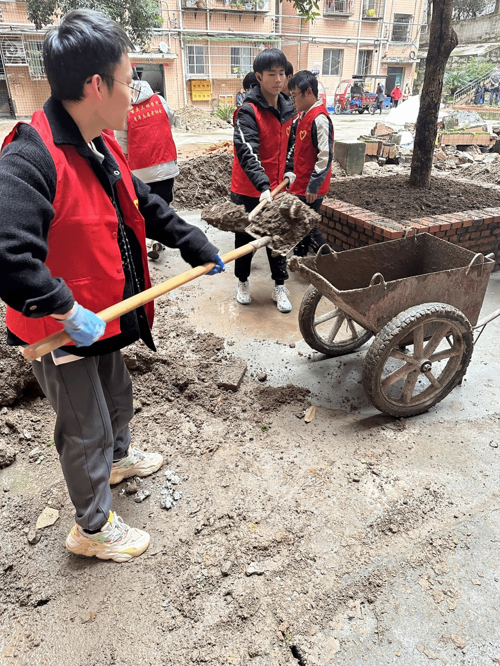 活动中,志愿者们分为三个队伍,每个队伍由社区工作人员带领。第一组志愿者们用刮铲和喷壶对街道门面的小广告进行排查清理,同时清理了街道上的垃圾。第二组负责清洁社区内卫生,他们一丝不苟地进行扫地、拖地、擦桌子,对卫生死角进行了彻底清洁。第三组前往居民区,每个人带上手套,拿上铁锹,帮助居民们铲土、运土和填土,此外还拿着小铲子铲除贴在墙上的小广告。大家积极配合,轮流换班,组织协调能力得到提高。