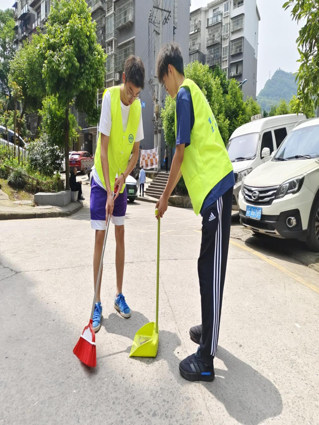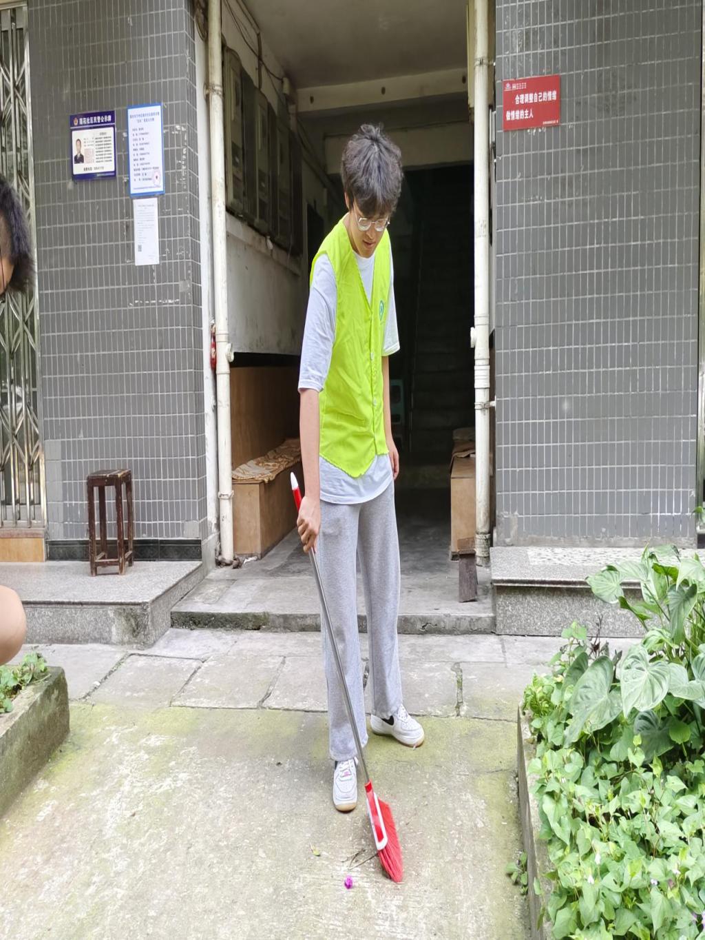 活动现场,同学们化身“劳动达人”,加入了集体劳动的热潮中。一组同学清扫居民楼的楼道,他们捋起袖子,挥动手臂,挥汗如雨,干得细致而认真。二组同学则前往广场、大坝等地方用垃圾夹将垃圾拾进垃圾箱内,用“劳动”缔造美好环境,用“劳动”践行美好品德,用实际行动体验劳动的快乐和幸福感。