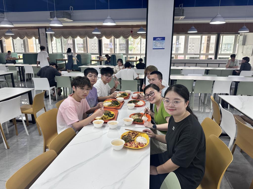 罗雪书记与同学们交流学习、生活中的问题和趣事,关心同学们在学习中遇到的困难,询问同学们对学院建设的意见,了解了同学们未来规划,对同学们规划给予肯定并提出学习、职业生涯规划、生活等相关建议,同时确定了长期联系互动的具体方案,互加QQ联系方式并建立QQ群,以便及时为同学们答疑解惑,计划今后以更加新颖的方式与联系寝室学生加强互动,切实帮助学生丰富大学生活。随后,罗雪与同学们一同在蓝雾苑食堂共进午餐。
