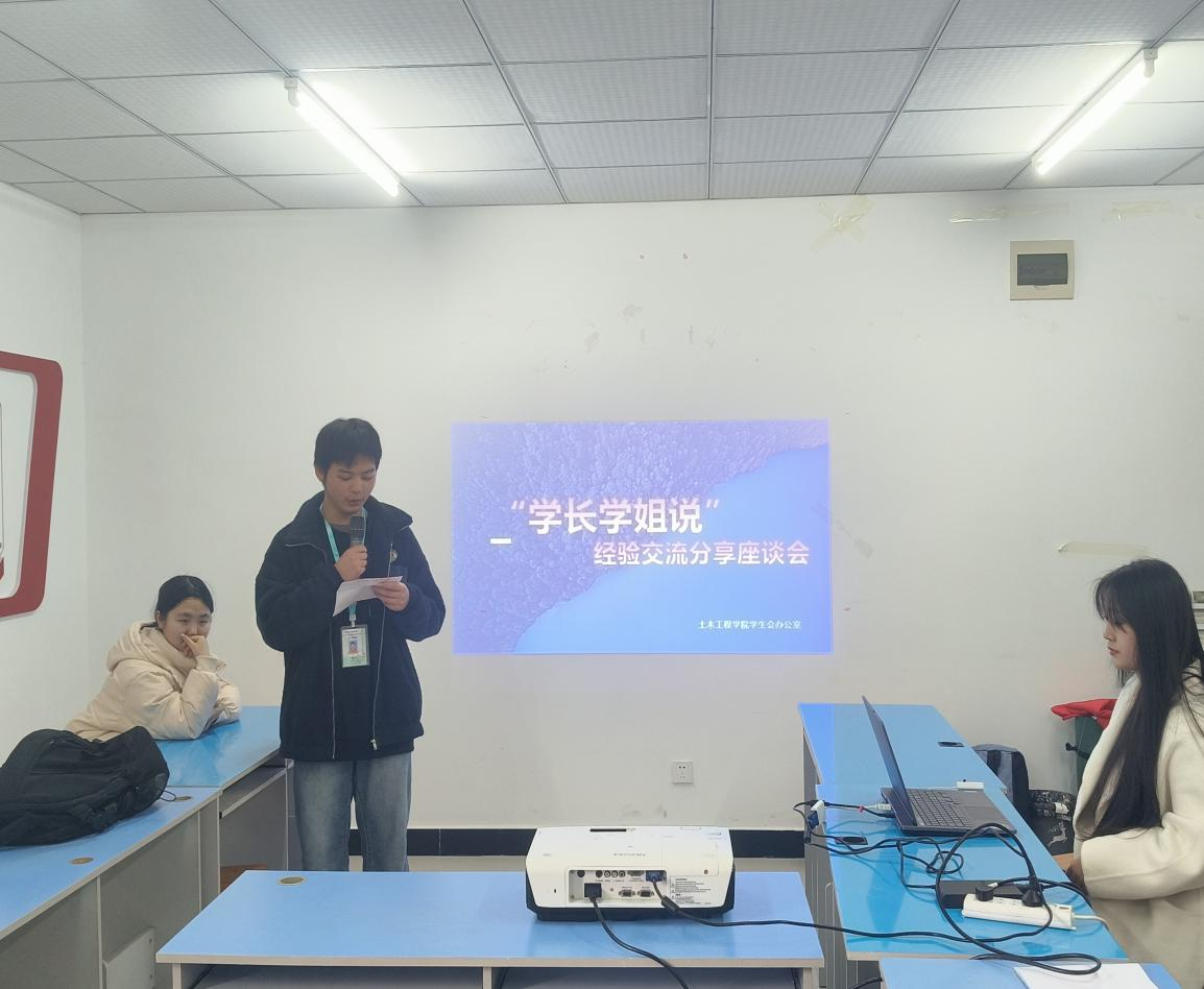 活动负责人以三个问题开场:你是否常常对学分绩点感到困惑?是否在面对各种考试时焦虑不安?是否渴望找到提升学习效率的秘诀?紧接着,曾任学习部负责人和代理班主任的2022级土木工程1班周文乐以专业学习经历为切入点,讲述了如何在学业与社团活动、竞赛项目之间找到平衡点。她举例自己曾参加2024年全国大学生测绘学科创新创业智能大赛的经历,整个暑期都在学校备赛准备,不断模拟重复,最终取得了一等奖。同时,她希望在座的同学们勇敢走出舒适区,因为人工智能发展迅速,测绘类专业的人才培养也面临全新的挑战和机遇,国家的重大战略需求在不断调整,测绘类专业的升级改造,如果大家能有创新创业理念,尝试参加各类学科竞赛和科研项目,拓宽视野,才能在未来增强自身竞争力。