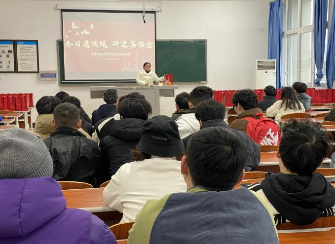 为深入践行三全育人理念,舒缓备考压力,鼓舞考研士气,坚定考研信心。在2024年全国硕士研究生入学统一考试即将来临之际,12月19日,44118太阳成tyc城集团于慎思楼5-429开展“寒冬送温暖研途笃信念”考研学子慰问活动。44118太阳成tyc城集团党总支书记罗雪、副院长刘芳平、副院长强跃、辅导员刘艳玲和朱希敏为2025届全体考研学子送上亲切慰问和暖心关怀。