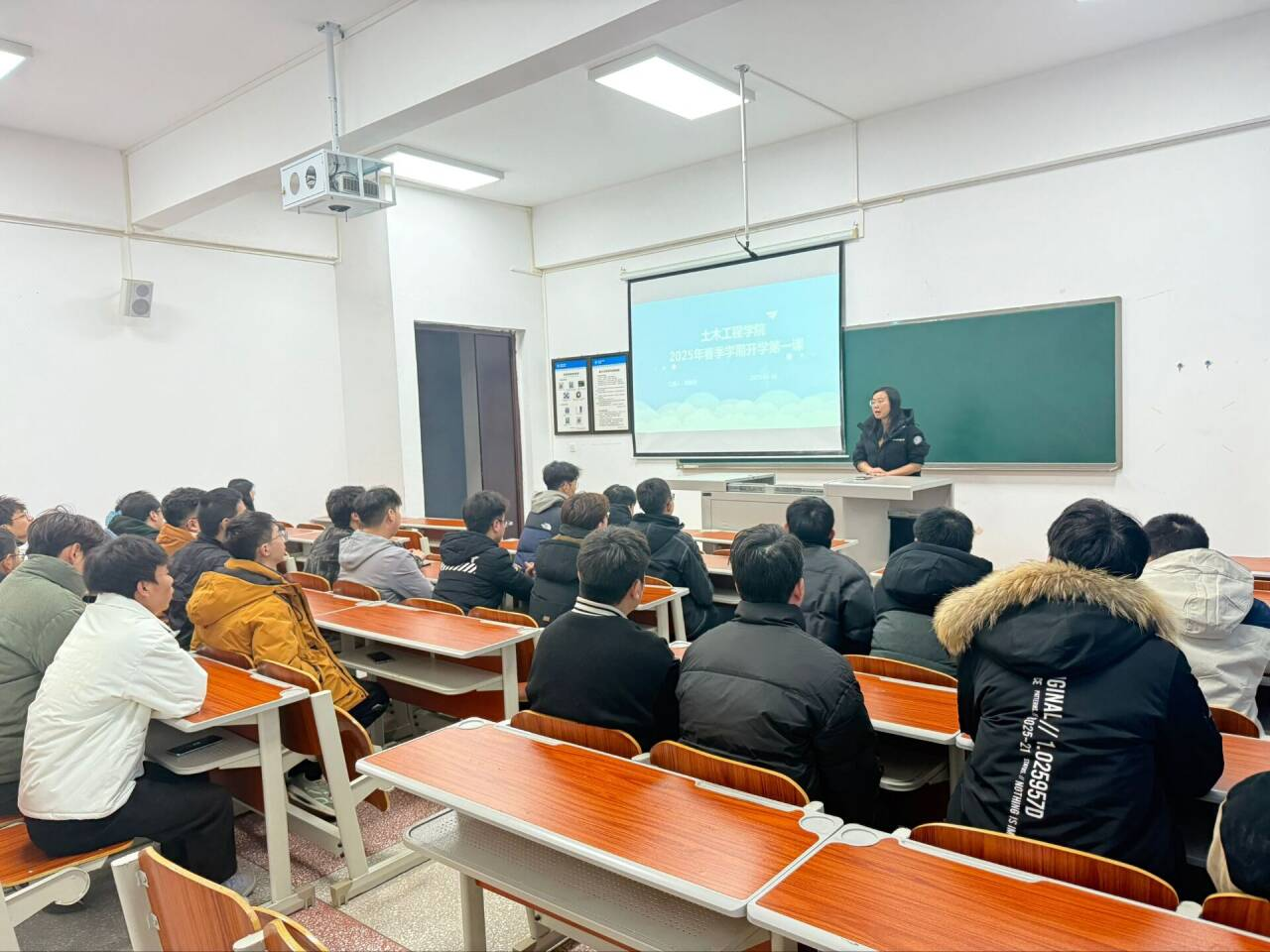 班会上,有的辅导员以当前热门电影《哪吒2之魔童闹海》为开题,讲述了在影片中,哪吒多次面对危险和困境,从未退缩,敢于与命运不断抗争,最后完成了自我的成长。希望每一位同学们都能找到自己的航向标,勇敢面对挑战,不怕困难,为自己的人生书写壮丽篇章。毕业年级辅导员在“第一课”中开展了就业形势分析及就业动员,勉励同学们要利用好最后一个学期,都能有自己满意的收获。研究生辅导员也利用热门话题DeepSeek,通过与同学们讨论人工智能对学术学习的影响,引导同学们关注科技前沿动态、勇担科技创新使命,也要守好个人学术道德底线,严禁抄袭剽窃。同时,各辅导员围绕安全教育、防范电信网络诈骗、心理健康、宿舍卫生健康、诚信教育等主题对学生进行了深入浅出的指导教育,并从纪律、学习等方面对学生们提出要求,希望同学们明确新学期目标,成为更好的自己。最后各位老师深入学生宿舍,开展宿舍安全检查,也将关怀与安全叮咛送到每一位学子心中。