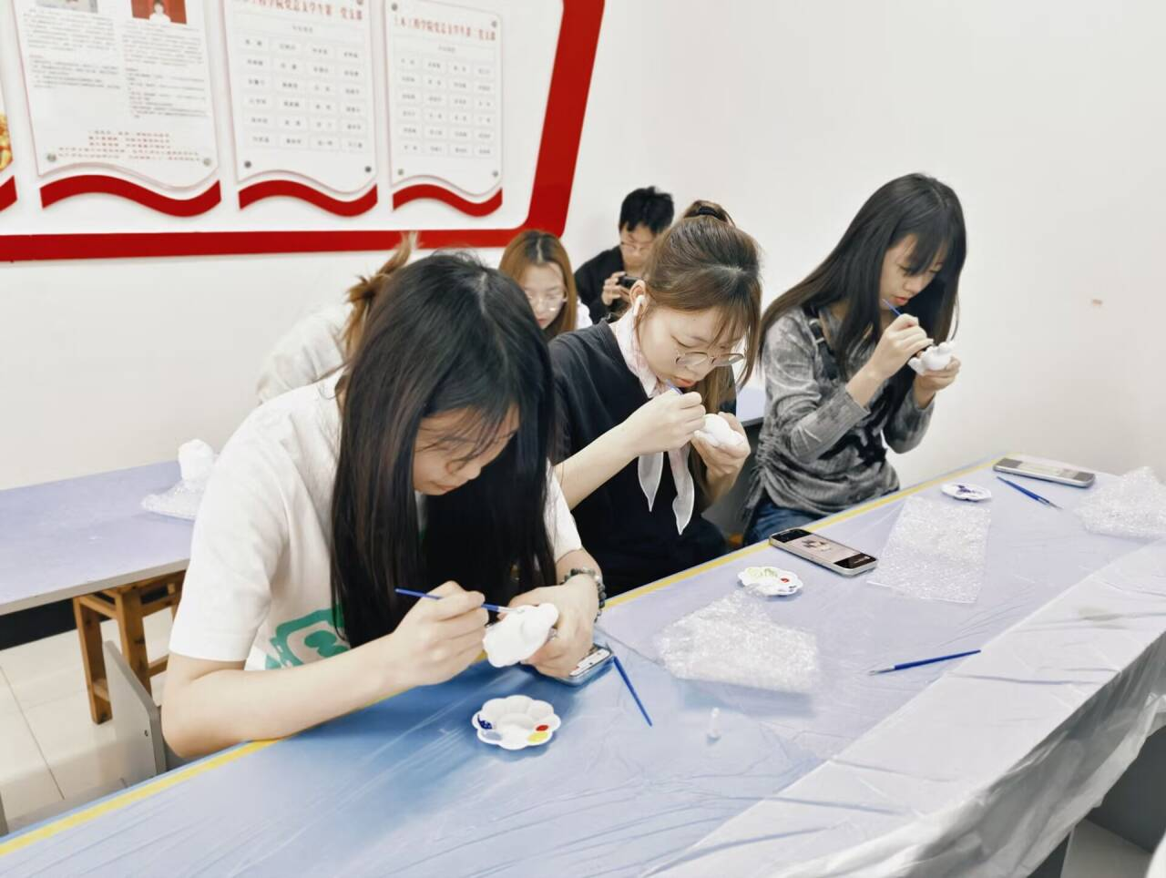 为深入推进“一站式”学生社区建设,强化学生社区的服务育人功能,引导学生积极应对学习生活压力,调节心理状态。4月26日下午,学院在蓝雾苑1舍党员活动室举办“石膏妙趣间,彩绘拾光梦”石膏娃娃彩绘心理活动。活动吸引了三十余名学生参与,在轻松愉悦的氛围中传递心理健康理念。