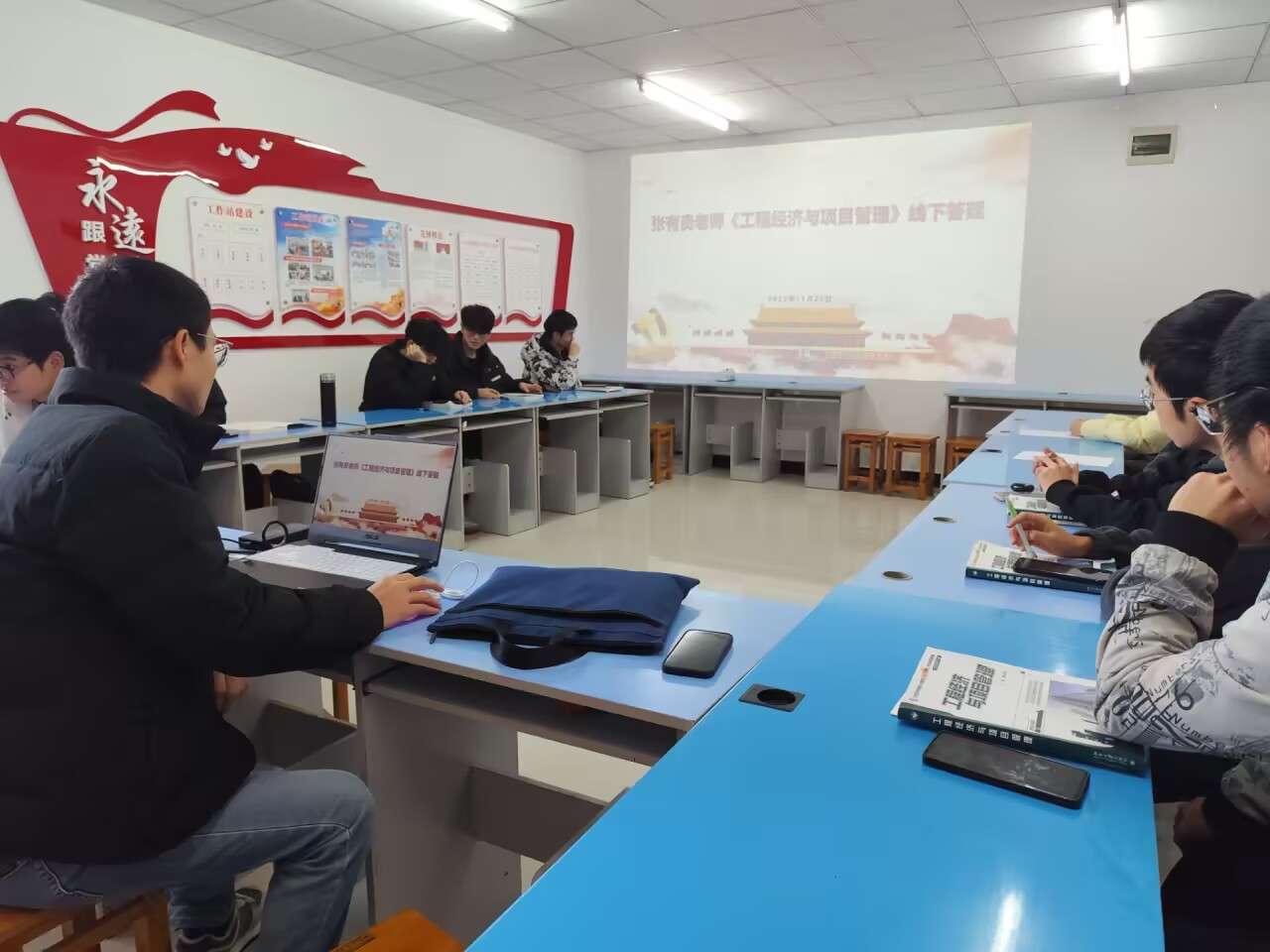 2025年11月27日下午4点,44118太阳成tyc城集团“专业老师‘寓’你说”——导师小灶第20期活动在“一站式”学生社区党员活动室顺利开展。本次活动聚焦《工程经济与项目管理》课程,特邀课程主讲教师张有贵老师进行分享,2023级辅导员刘艳玲老师与近20名学生共同参与。活动由刘艳玲老师主持。