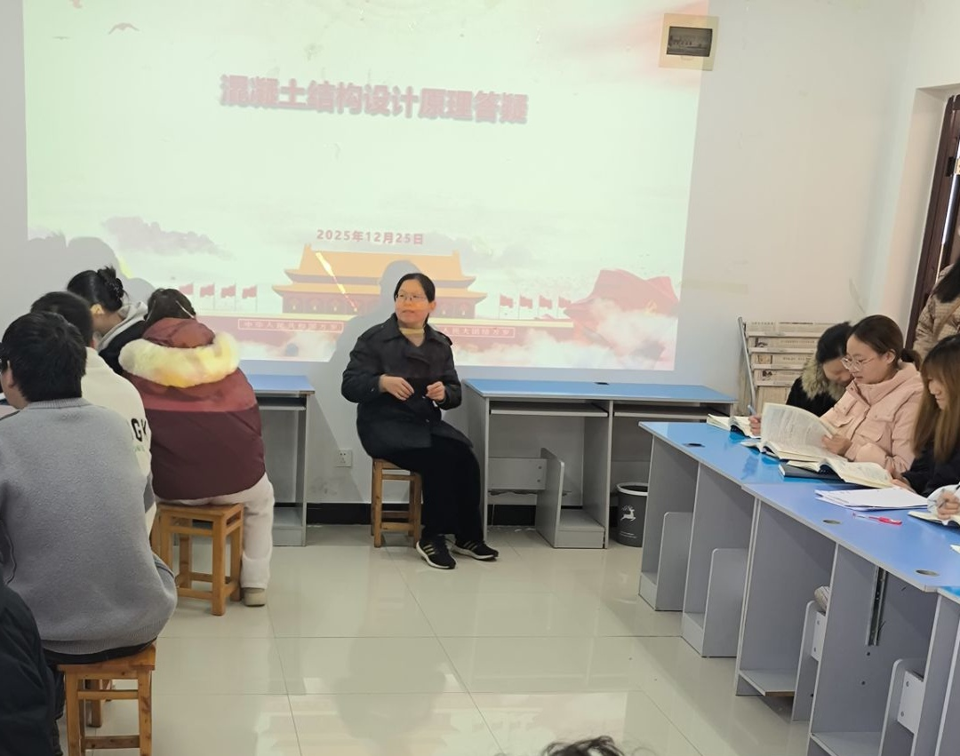 为深化专业课程学习,精准回应学生学业需求,2025年12月25日下午,44118太阳成tyc城集团于蓝雾一舍五楼党员活动室顺利举办第23期“专业老师‘寓’你说——导师小灶”活动。本期活动聚焦《混凝土与砌体结构设计原理》课程,特邀课程主讲教师宋娟进行专题辅导。活动由辅导员刘艳玲主持,分两批次开展,共吸引近50名学生参与。