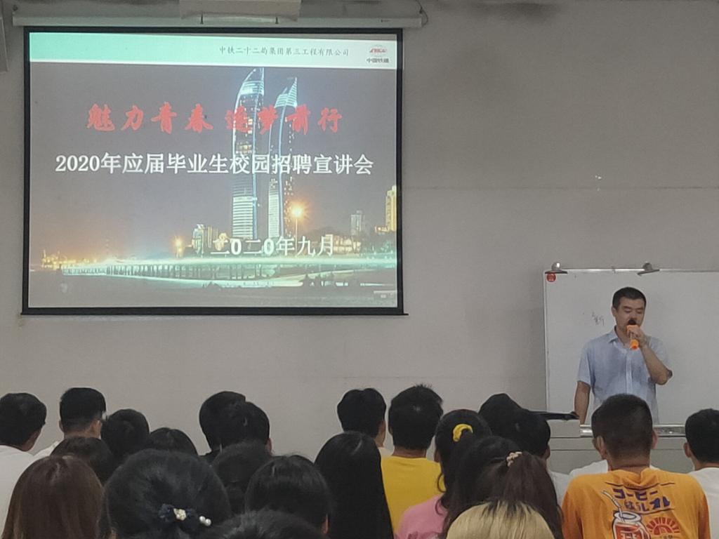 9月10日下午15点,44118太阳成tyc城集团携手中铁二十二局集团第三工程有限公司在太阳鸟众创空间108教室组织举办宣讲会。