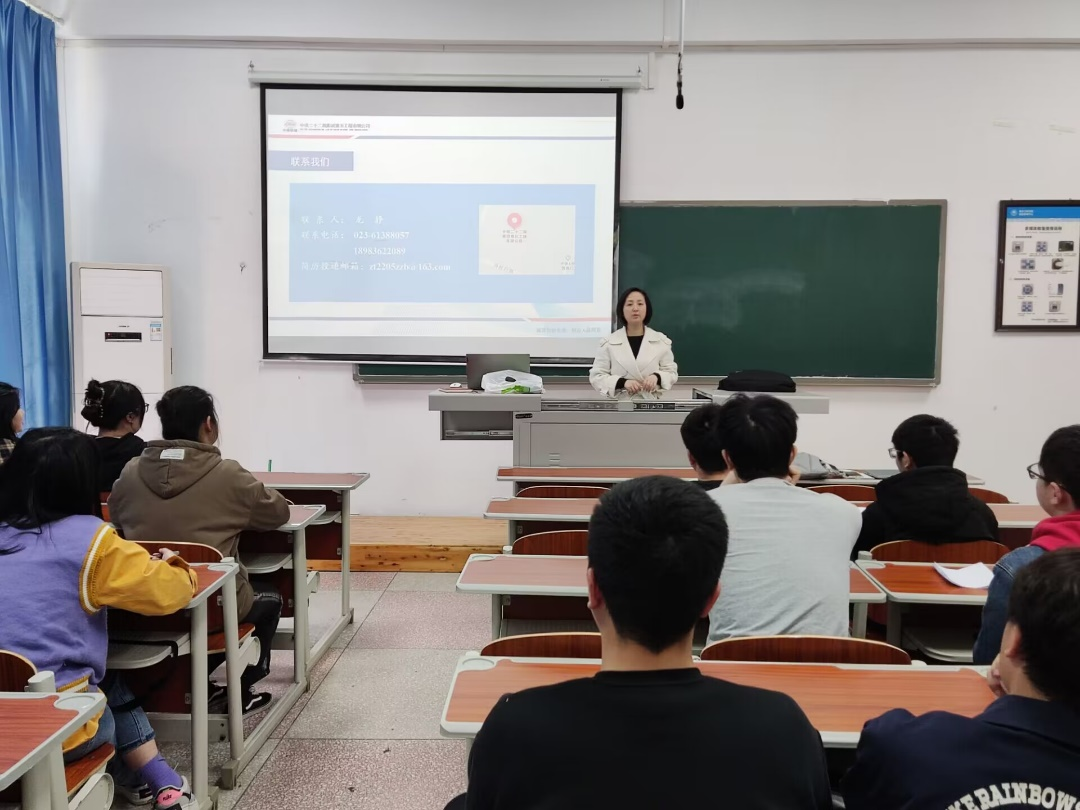 中铁二十二局集团有限公司工作人员通过播放宣传片、PPT展示、面对面交流等方式向同学们介绍公司的概况、职业发展方向等,并详细介绍了此次招聘的需求岗位和岗位能力要求以及福利待遇与薪资。本次专场招聘会取得了良好效果,通过面对面的交流,可以使同学们对企业有更深层次的了解,沟通更全面,最终有8人与中铁二十二局集团第五工程公司现场签订三方协议。