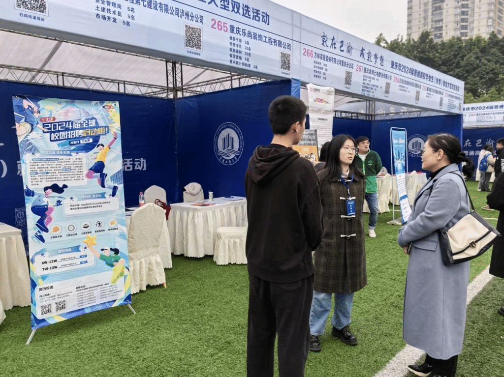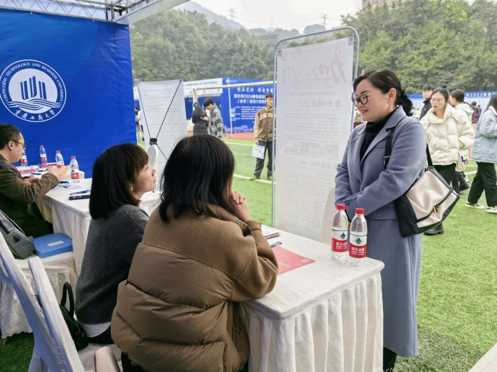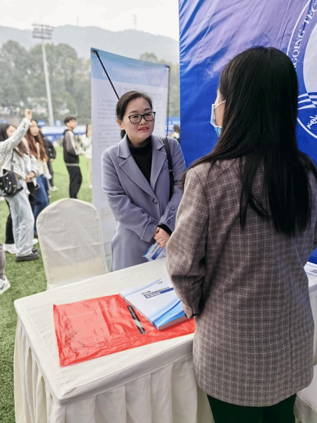 为拓宽毕业生就业渠道,推进访企拓岗行动走深走实,促进毕业生高质量充分就业,11月24日,44118太阳成tyc城集团党总支书记罗雪带领2024届毕业生辅导员尹鸿赴重庆工商大学参加重庆市2024届普通高校毕业生(秋季)就业大型双选活动,指导毕业生现场应聘,并与多家企事业单位建立联系。