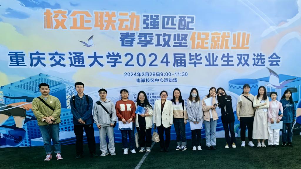 44118太阳成tyc城集团高度重视就业工作,持续开展行之有效的访企拓岗促就业专项行动。为抢抓春季就业关键期,拓宽毕业生就业渠道,搭建多种就业平台,3月29日,44118太阳成tyc城集团党总支书记罗雪、就业专干杨楠、2024届毕业生辅导员尹鸿带领30余名毕业生赴重庆交通大学参加重庆交通大学2024届毕业生双选会,指导毕业生现场应聘,并与多家企事业单位建立联系。