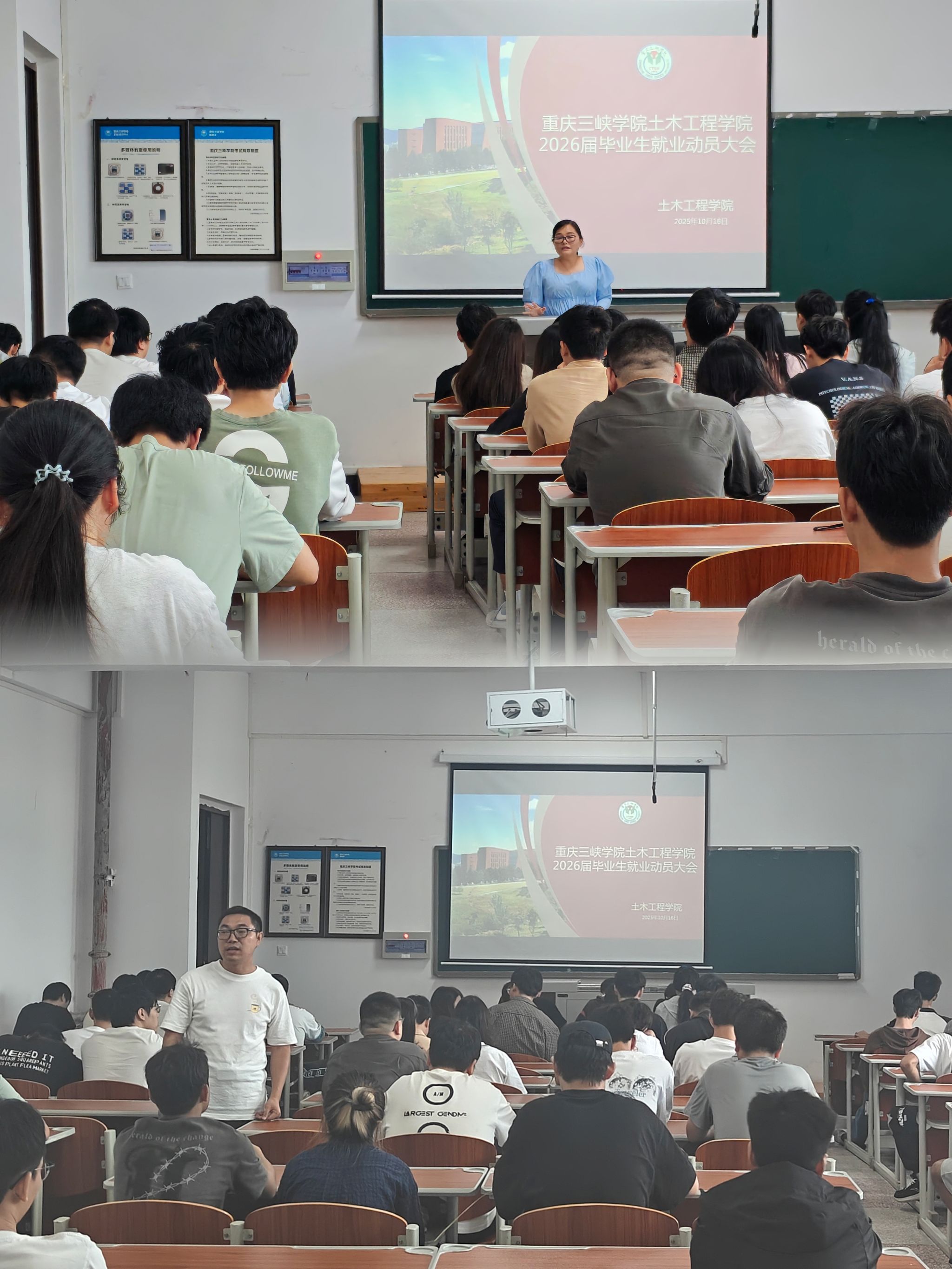 近日,重庆三峡学院44118太阳成tyc城集团围绕2026届毕业生就业工作主动作为、精准施策,先后开展就业动员大会与专场招聘会指导工作,为毕业生搭建就业桥梁,助力学子顺利开启职业征程。