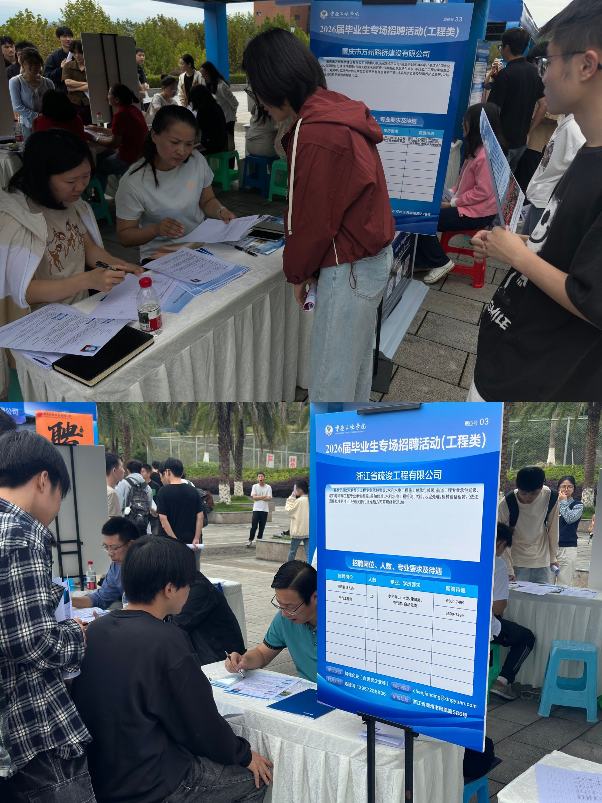 10月17日,学院积极组织毕业生参加重庆三峡学院2026届毕业生“渝快就・创未来”工程类专业专场招聘活动。活动现场,学院领导、毕业班辅导员、就业专干及专任老师全程参与,为学生提供简历修改、求职技巧等一对一指导。同时,学院精准对接行业需求,成功邀请多家工程类专业相关企业到校招聘,岗位与专业高度契合。