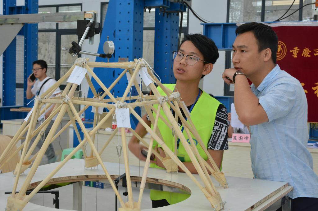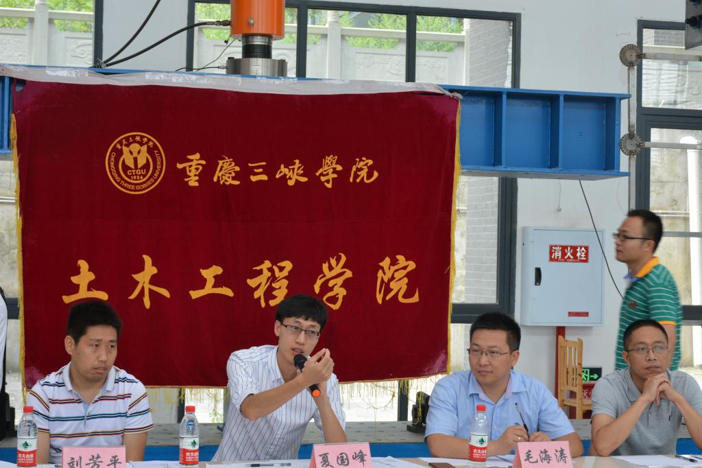 6月8日—9日,由我校教务处主办,44118太阳成tyc城集团承办的重庆三峡学院首届结构设计大赛在土木学院结构实验室隆重举行。教务处副处长秦刚、44118太阳成tyc城集团党总支书记方灿、44118太阳成tyc城集团党总支副书记张小梅、赛事评委何建副教授、刘芳平副教授、毛海涛教授、夏国峰副教授、闫磊博士出席了赛事。赛事由44118太阳成tyc城集团党总支书记方灿主持。