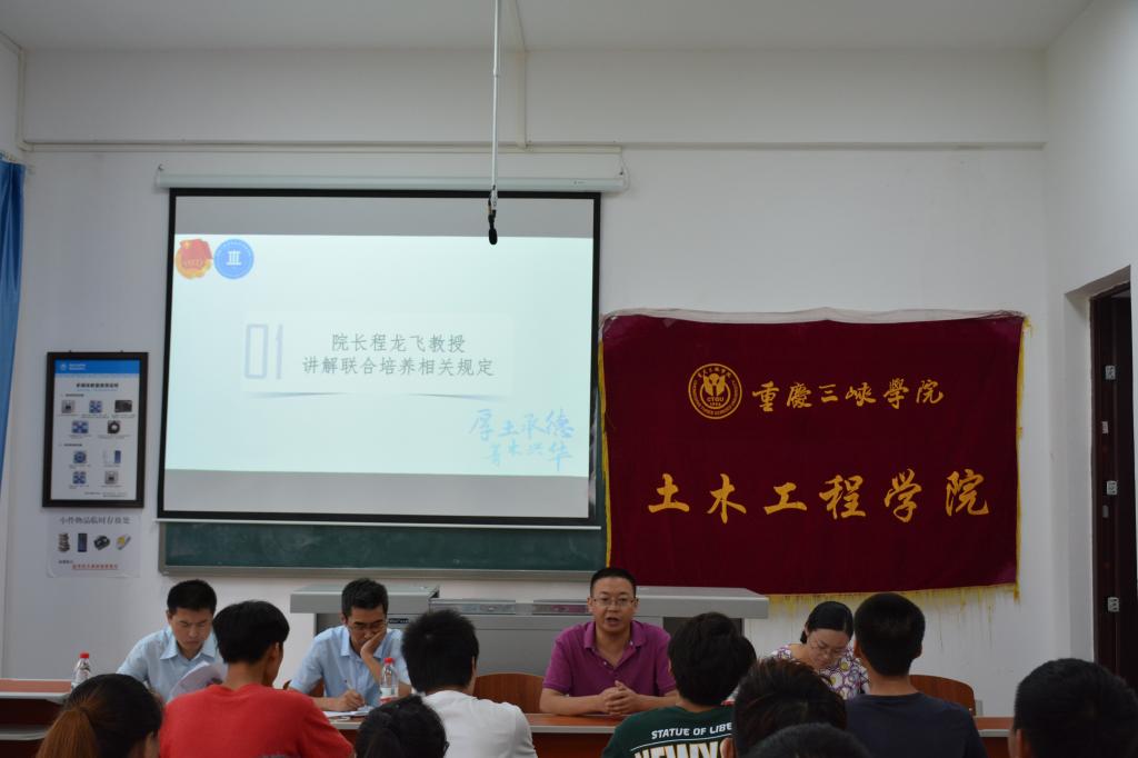 会上,学院院长程龙飞教授首先对拟选派的联合培养学生表示祝贺,并详细讲解了重庆三峡学院—东南大学联合培养学生相关管理规定,提醒同学们用勤奋和汗水,用智慧和热情,抓住宝贵的机会,把握住优质的学习资源,体验和感受良好的学习氛围,开阔眼界,提升自我。