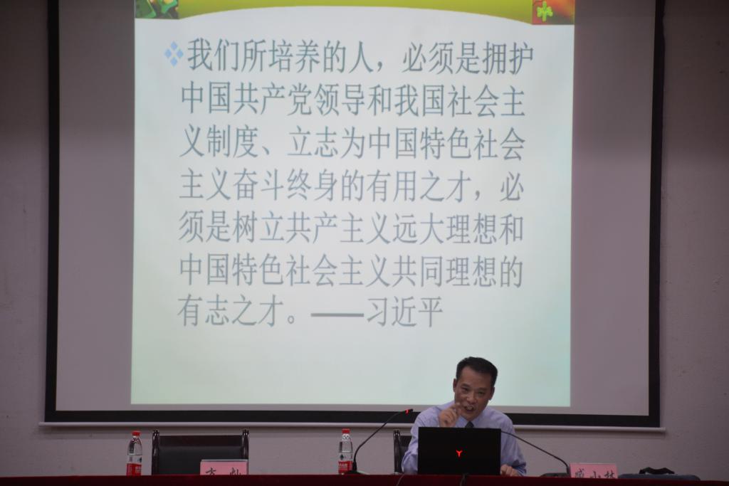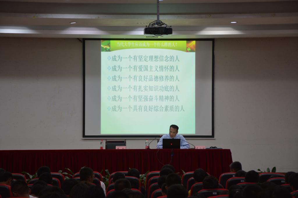 随后,臧副校长对“小我梦想”和“大我情怀”分别进行了阐释,并围绕三个纲要进行了重点讲解:一是从时代背景看我的大学生活;二是从时代进程看我的历史使命;三是从时代要求看我的责任担当。臧副校长结合实际案例,用朴实的语言诠释了了当代青年大学生的使命担当,并针对当代大学生应该成为怎样的人引用习近平总书记提出的六点要求进行强调:一是成为一个有坚定理想信念的人;二是成为一个有爱国主义情怀的人;三是成为一个有良好品德修养的人;四是成为一个有扎实知识功底的人;五是成为一个有坚强奋斗精神的人;六是成为一个有良好综合素质的人。