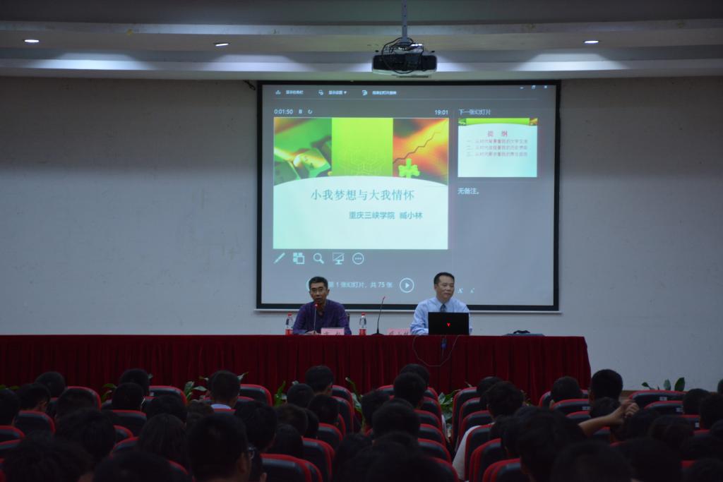 为加强新生思想建设、强化学生政治引领,9月21日晚,学校党委常委、副校长臧小林教授为我院2019级新生作了“小我梦想与大我情怀”的入学教育讲座。