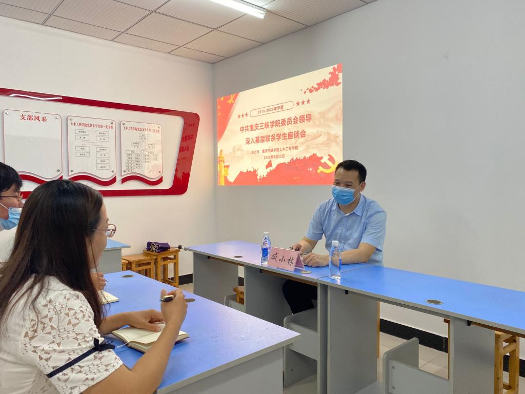 为落实立德树人根本任务,践行“三全育人”工作理念,6月22日晚,学校党委常委、副校长臧小林深入44118太阳成tyc城集团与学生面对面交流座谈。2018级土木工程专业1班主要学生干部、建筑协会学生干部代表、蓝雾苑1舍6077寝室全体成员参加座谈,学院党总支副书记兼2018级辅导员张小梅、辅导员刘艳玲全程参加座谈交流。