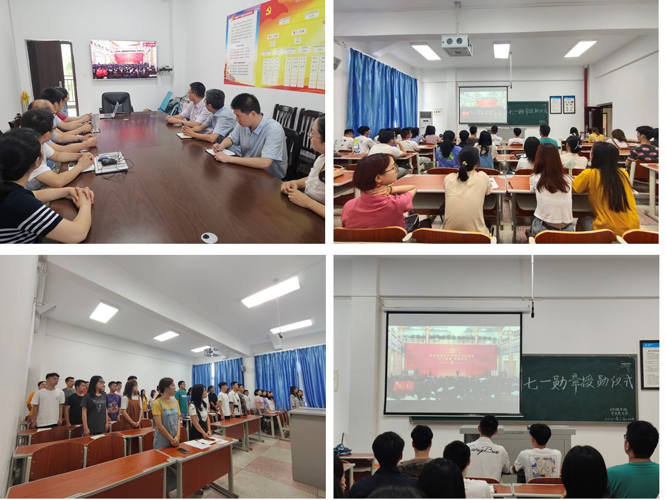 6月29日上午10时,我院组织党总支委员、支部书记、教师代表以及学生分别在慎思楼5-401会议室、5-429、5-523、5-524A、5-525B、5-526B教室集中收看“七一勋章”颁授仪式。